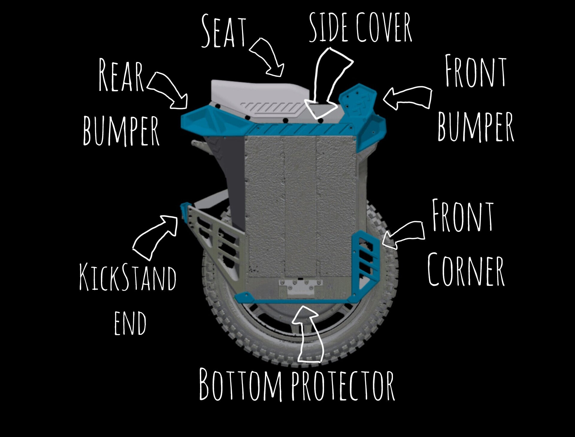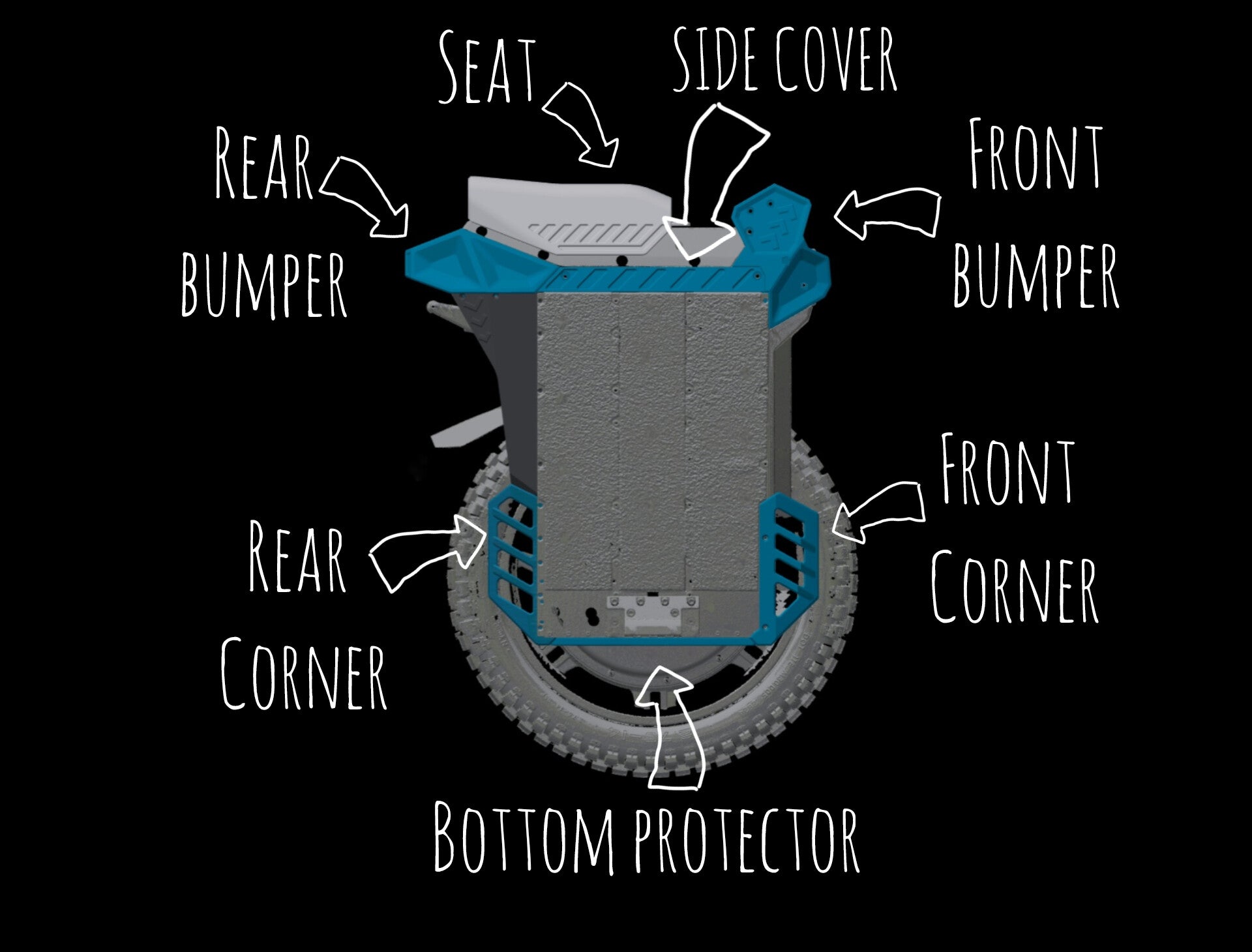 The upper bumpers consist of 4 parts: Front bumper, Side Cover, Rear Bumper and Extended Surface. Each of these parts is installed separately but they form a whole after assembly, so when choosing elements you cannot order them separately