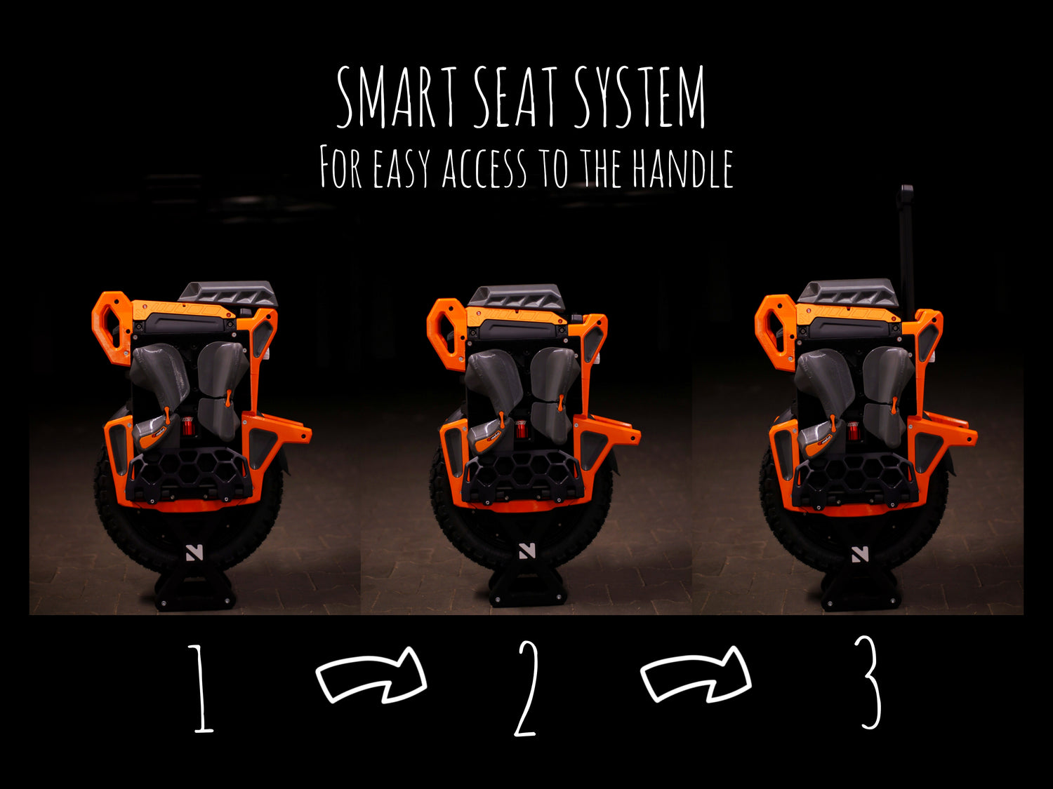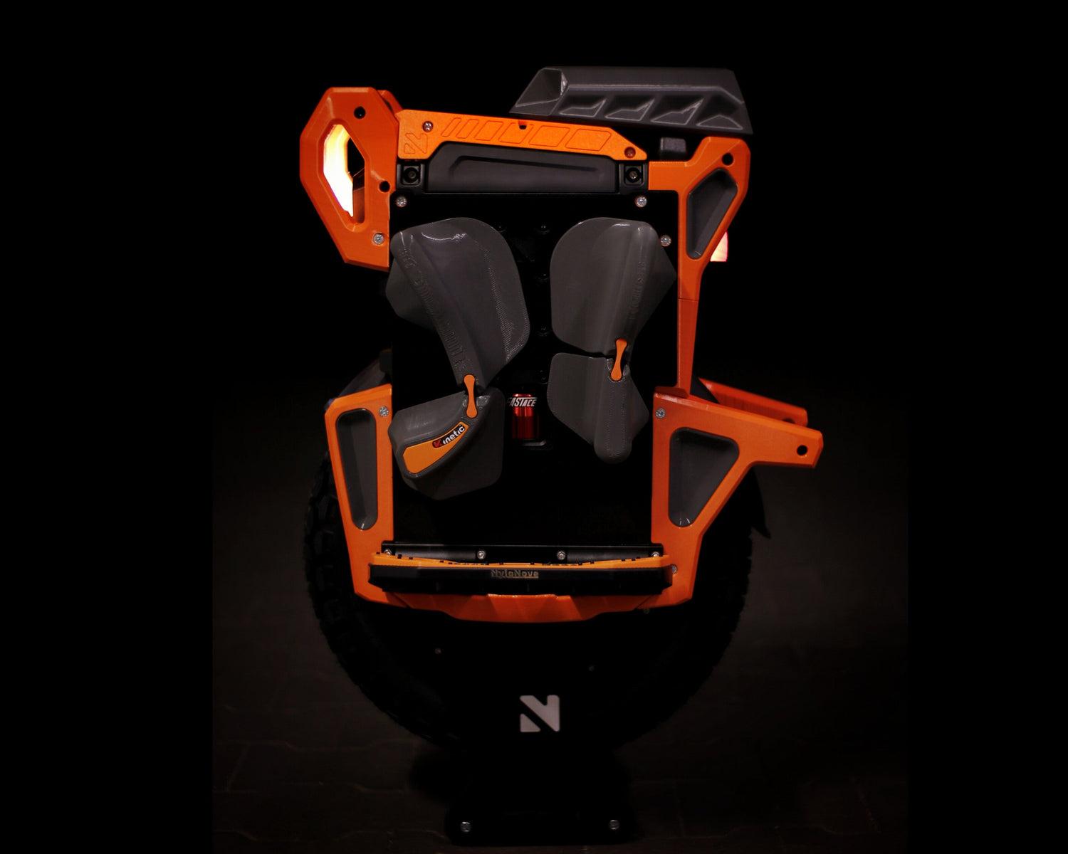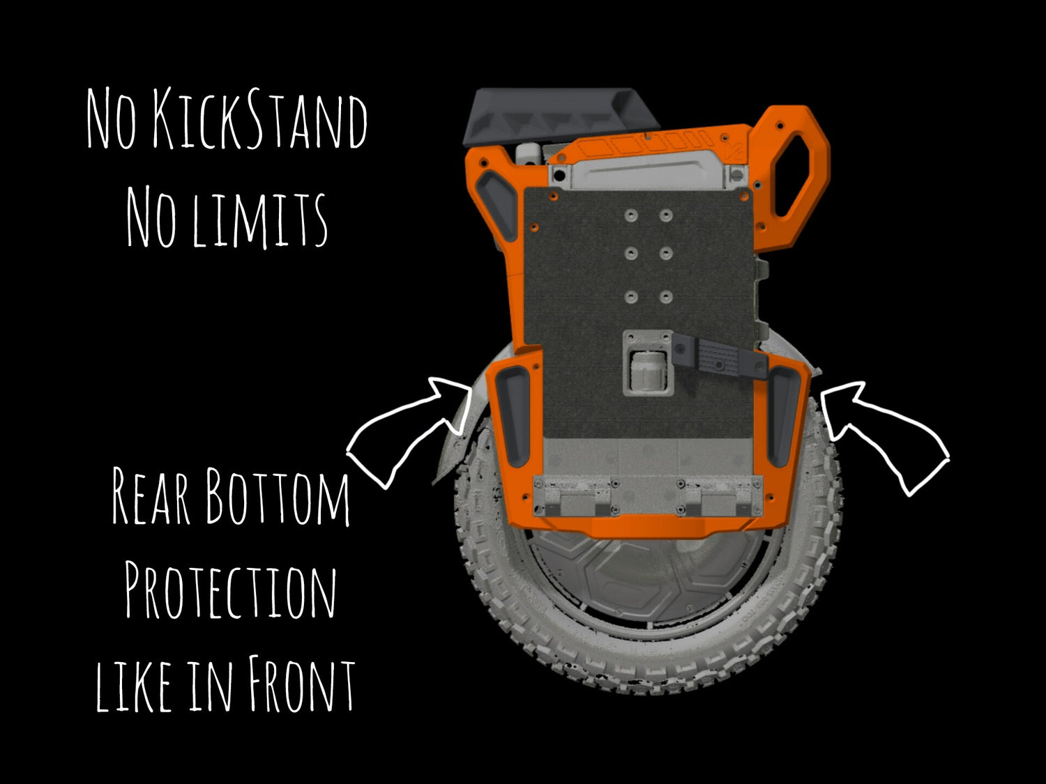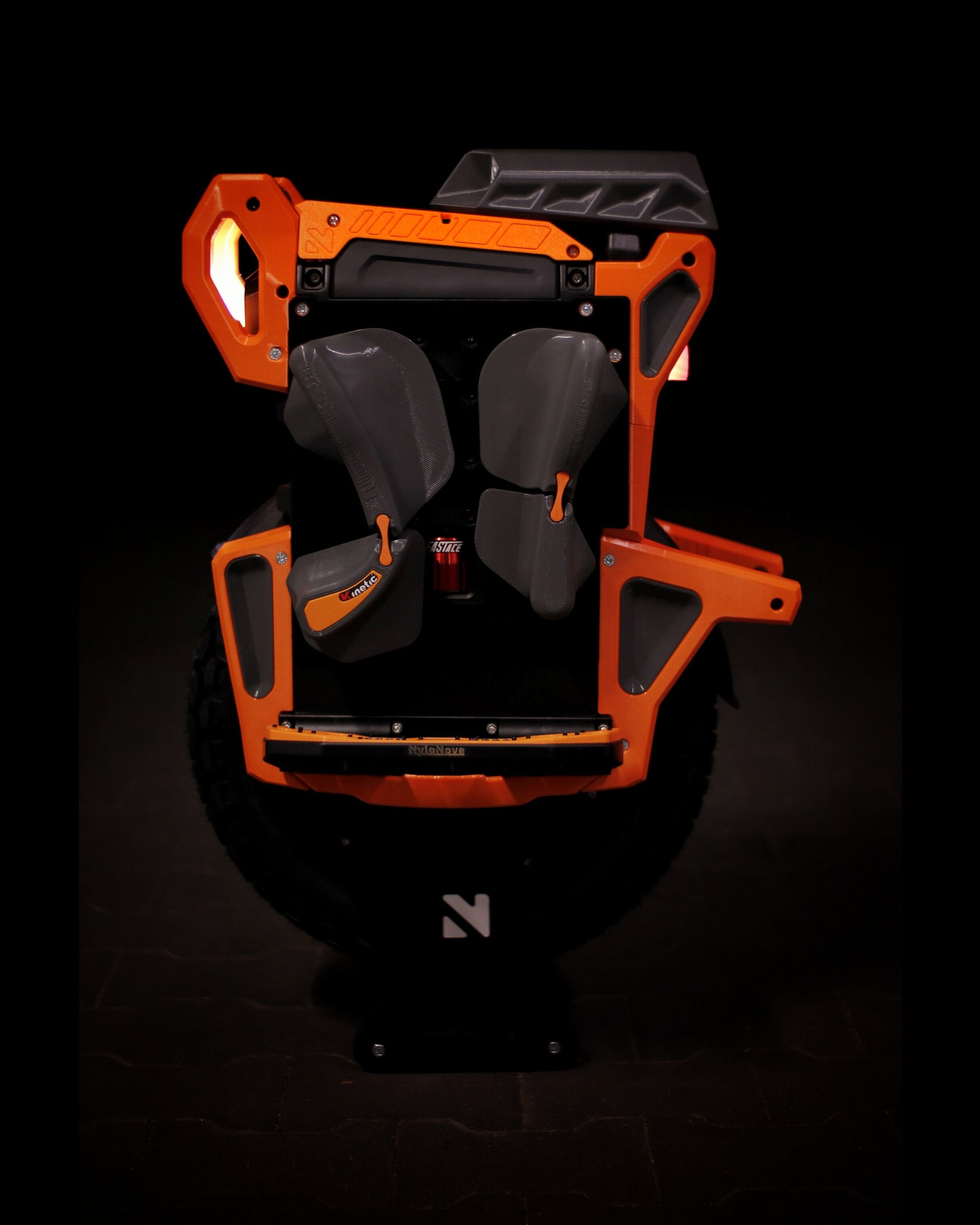 The wheel is protected on all sides, and the surface for pads has been extended. The front bumper, in addition to great protection against frontal impacts, has received additional practical handles that will certainly be useful when carrying the wheel. The lower protective parts have been designed for the best protection and for easy cleaning. The kickstand has been reinforced inside to ensure stability, but at the same time protects the user from unwanted impacts on body parts during a extreme situations