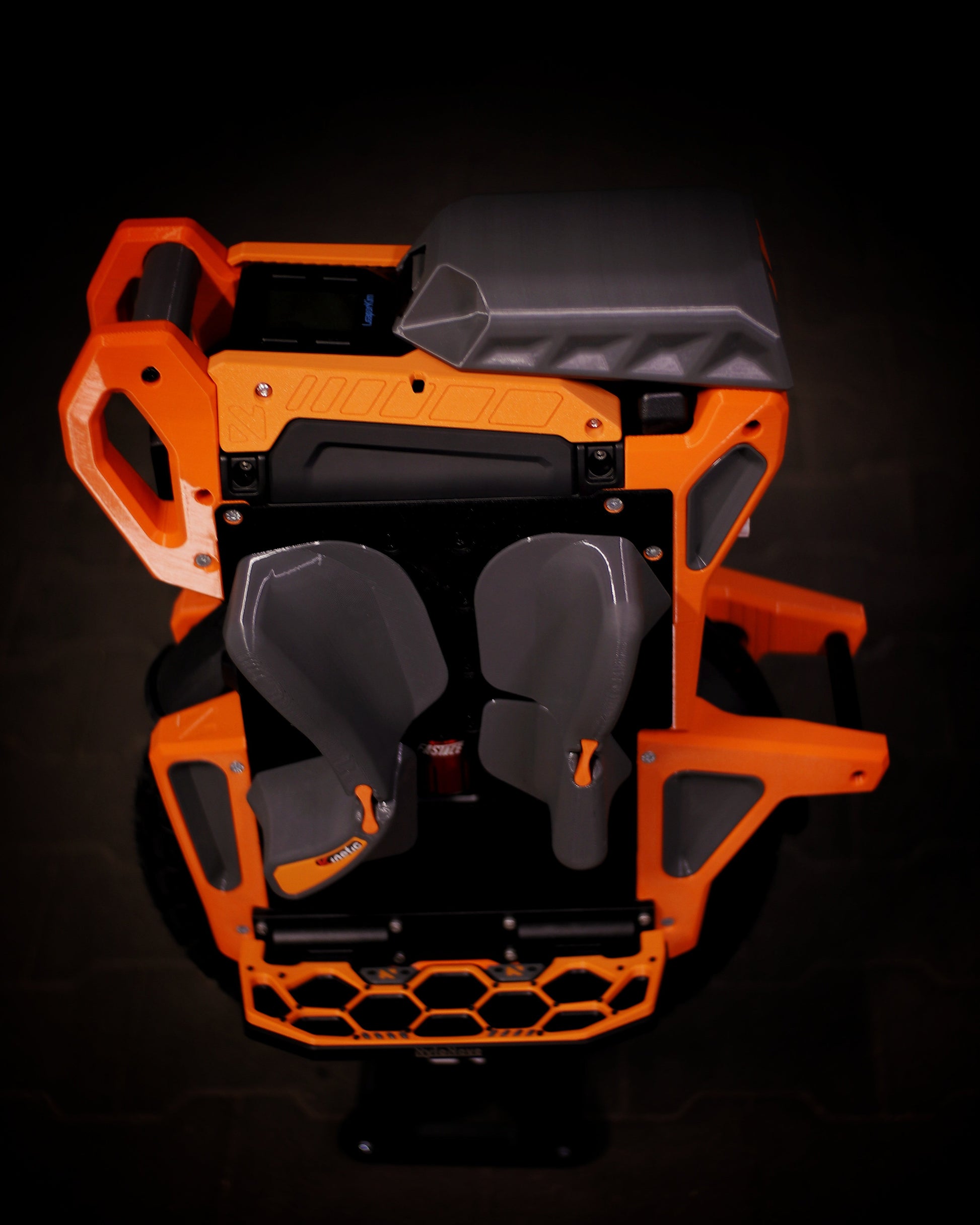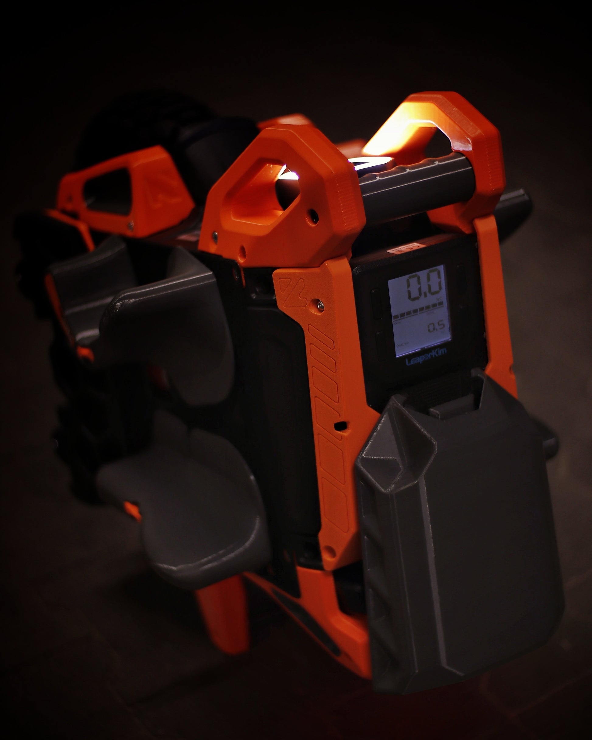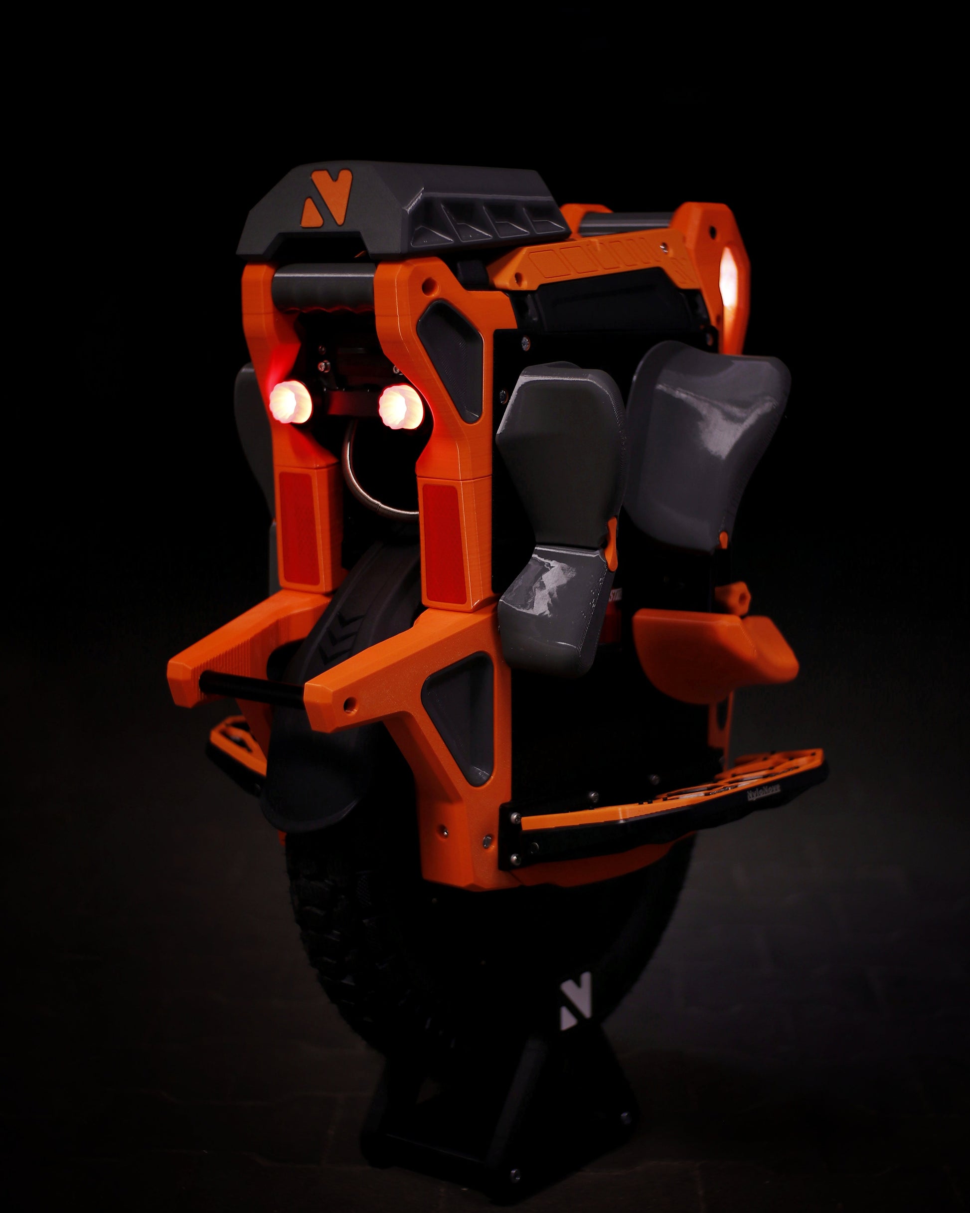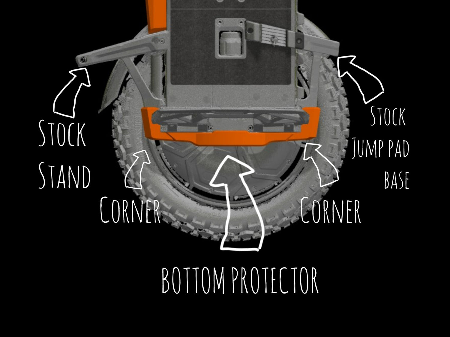 The wheel is protected on all sides, and the surface for pads has been extended. The front bumper, in addition to great protection against frontal impacts, has received additional practical handles that will certainly be useful when carrying the wheel. The lower protective parts have been designed for the best protection and for easy cleaning. The kickstand has been reinforced inside to ensure stability, but at the same time protects the user from unwanted impacts on body parts during a extreme situations